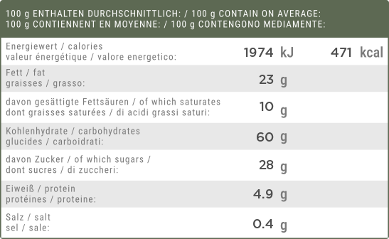 These cookies impress with their typical American recipe: pleasantly crispy on the outside, with a firm bite and full-bodied flavor. Deliciously melt-in-the-mouth chocolate chips meet juicy raisins to create a harmonious combination of chocolatey sweetness and fruity depth. An energy-rich snack that is quickly available and reliably delicious – whether on the go, at home, or in an emergency.